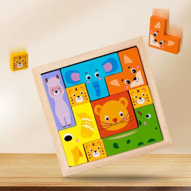 هر قطعه با تصویر یک حیوان مانند شیر، فیل، روباه و… طراحی شده و کودک را ترغیب میکند تا بارها و بارها پازل را تکمیل کند.