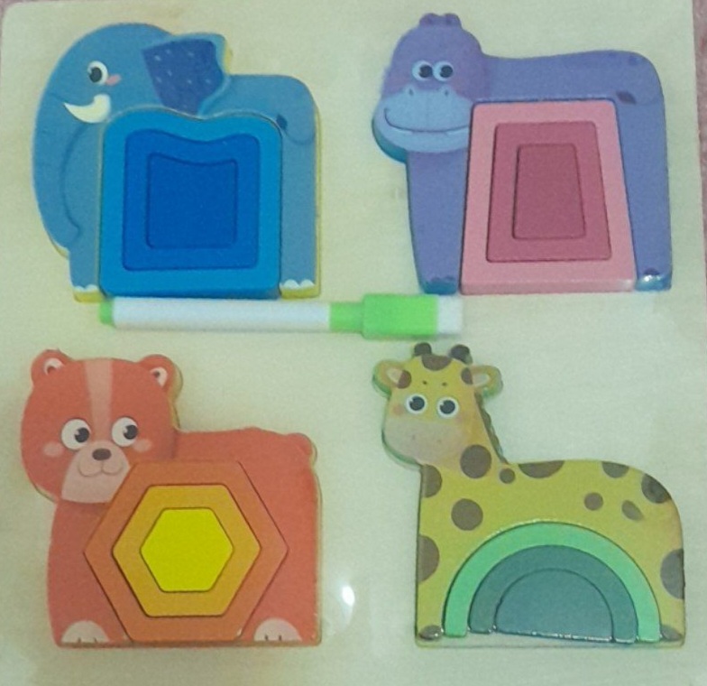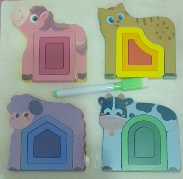 شامل چند صفحه پازل چوبی با طرح حیوانات مختلف